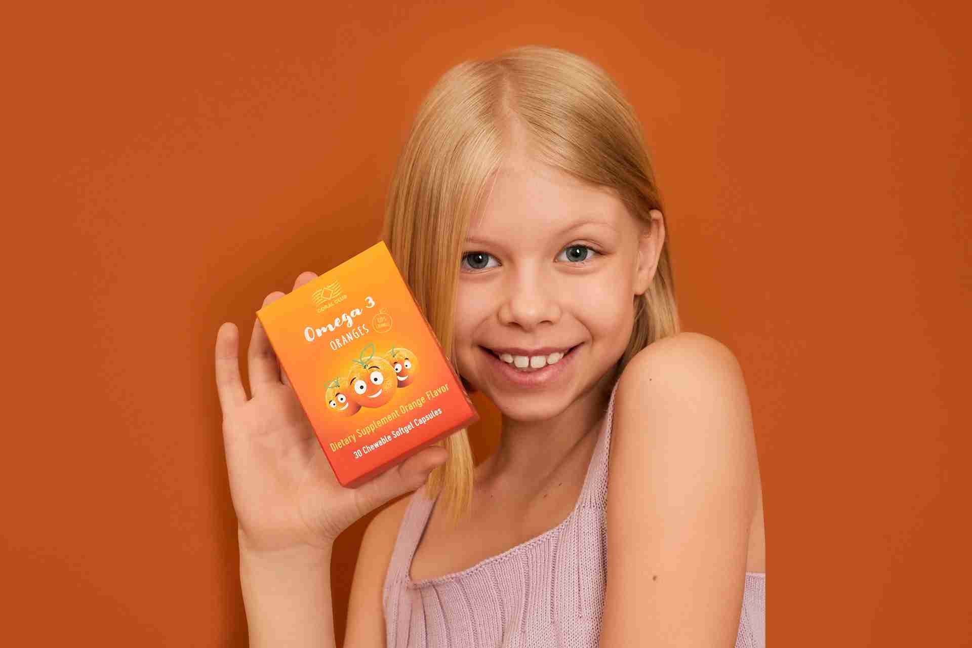 Omega 3 oranges - the ultimate superhero for your little ones! This product supports a healthy heart and blood flow, as well as emotional well-being of kids. With Omega 3 Oranges, your kids can improve their memory, concentration, and vision, helping them excel in school and beyond. Give your kids the superpowers they deserve with Omega 3 Oranges!