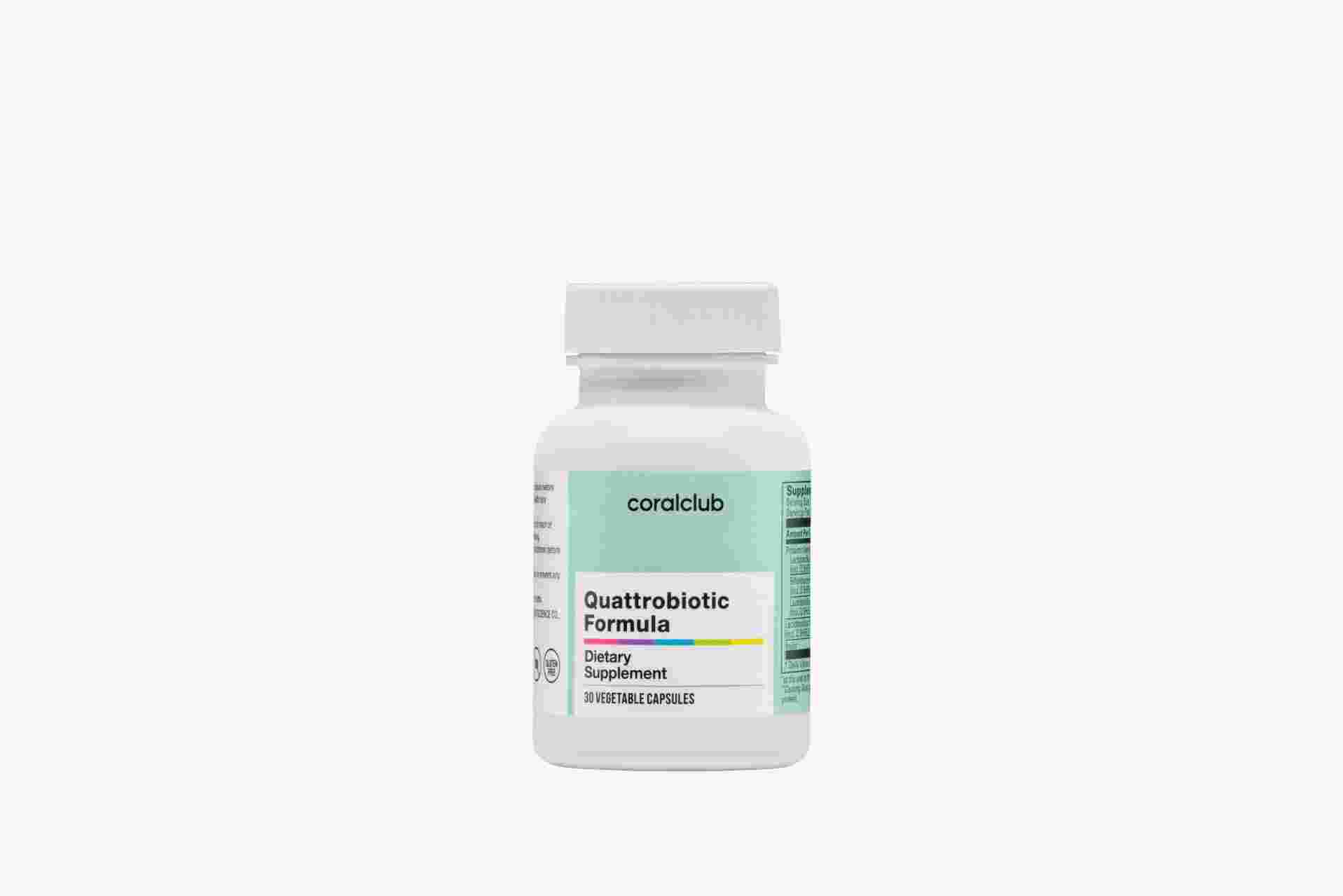 • Quattrobiotic Formula is an innovative complex designed to support intestinal health. Each capsule delivers 12 billion CFU of probiotics using advanced four-layer protection technology, which helps safeguard beneficial bacteria from external and internal influences and ensures they reach the intestines in their active form.