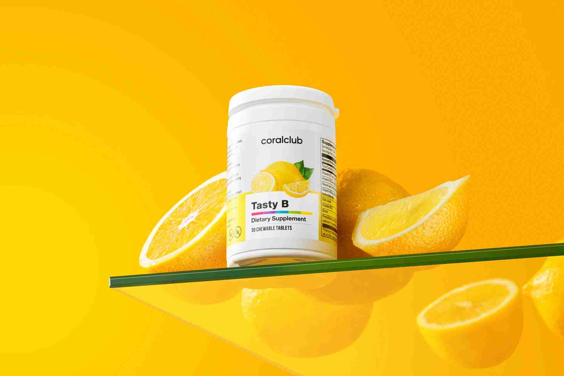 Active ingredients1 tablet % DV* Niacin (as nicotinamide)16 mg 100% Pantothenic acid (as calcium-D-pantjthenate)6 mg 100% Vitamin B122,5 mcg 100% Vitamin B6 (as pyridoxine hydrochloride)1,4 mg 100% Vitamin B1 (as thiamin hydrochloride)1,1 mg 100% Vitamin B2 (as riboflavin)1,4 mg 100% Folic Acid200 mcg 100% Biotin50 mcg 100% Other Ingredients: sorbitol (sweetener)**, citric acid (acidity regulator), natural lemon flavor, magnesium stearate (anti-burning agent), steviolglycosides (sweetener). *Percent Daily Values